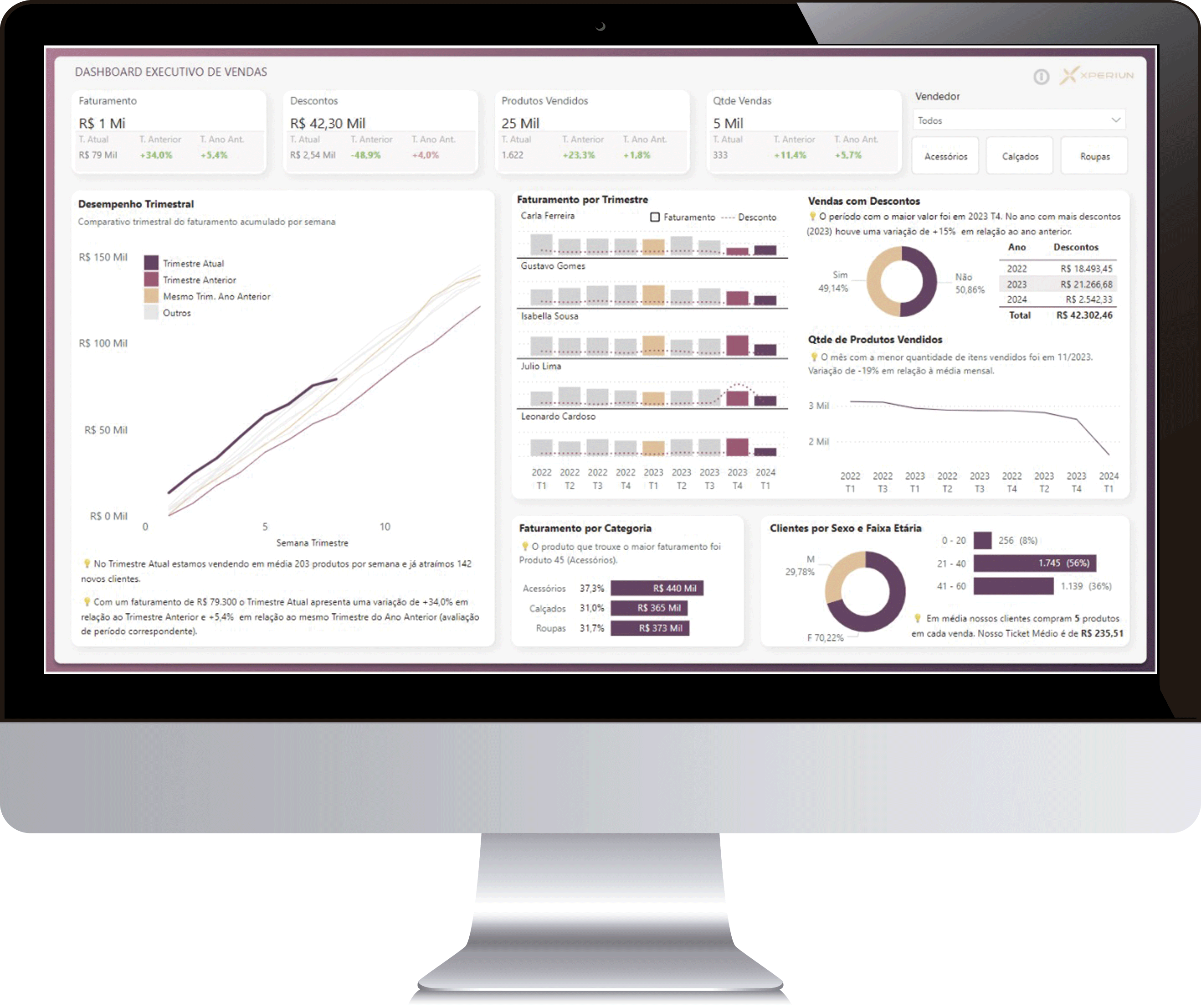 Nossa implantação dos processos de BI são coordenados através de tags, coleta, armazenamento e análise dos dados, trazendo insights valiosos sobre o comportamento e desejos, além do mapeamento da jornada em diversas plataformas. Tudo isso será entregue em dashboards interativas com dados disponibilizados em tempo real.